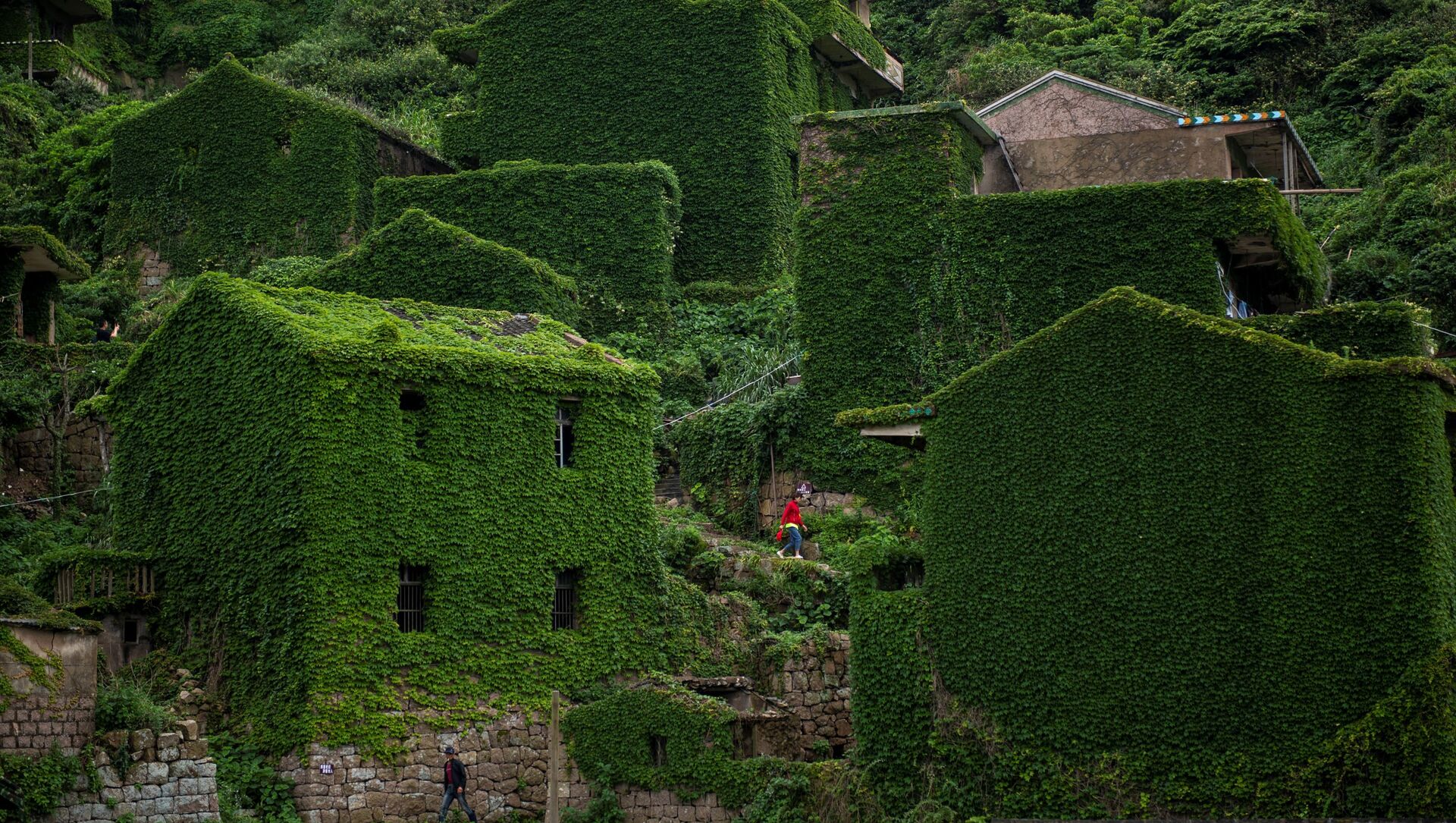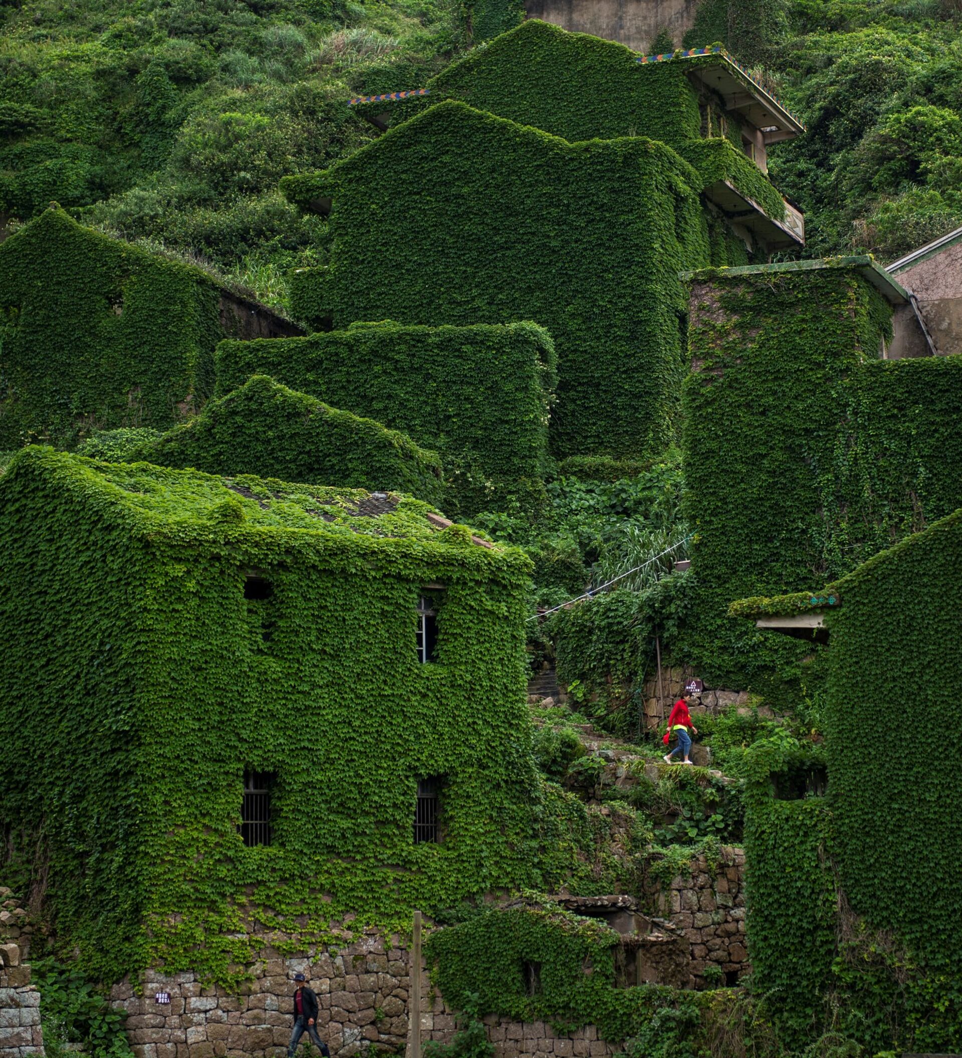 Entire houses have been completely overgrown, as though they were vacuum-sealed in a lush layer of green in Houtouwan on the Shengshan islands in China's eastern Zhejiang province. The village was once home to more than 2,000 fishermen among other residents, but was abandoned in the early 1990s. Today, the village is only home to a handful of people, but has become a popular tourist attraction.