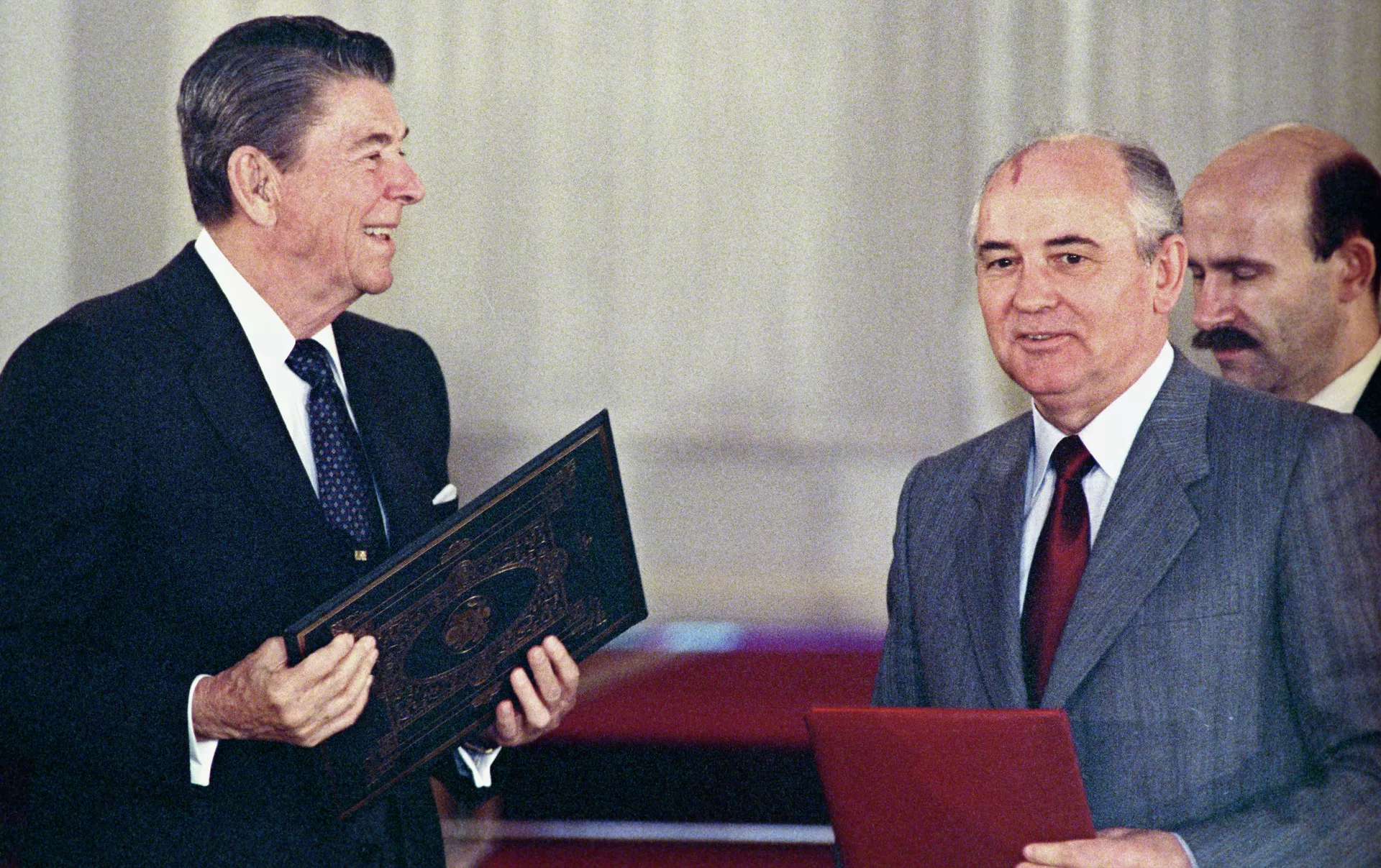 The agreement was signed on December 8, 1987, in Washington by then-General Secretary of the Communist Party of the Soviet Union Mikhail Gorbachev and then-US President Ronald Reagan. It was ratified by the US Senate on May 27, 1988 and came into force on June 1, 1988.