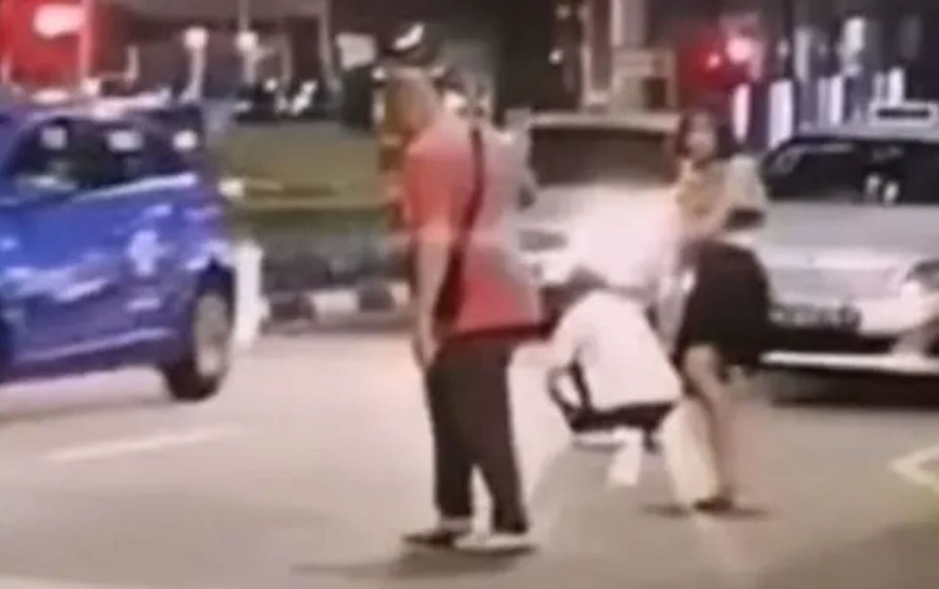 She hits him on the back before undressing and pulling down her panties. Another man, wearing a white shirt and squatting on the road as the scene unfolded, then approaches the woman and helps her pull her underwear back up while blocking her from going after the driver again. She then heads toward the car beginning to put her dress back on.