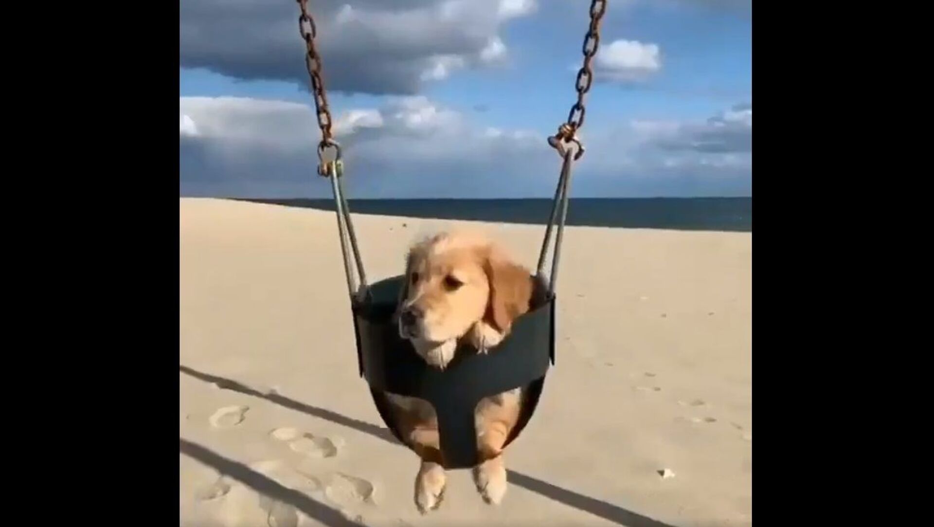 An adorable golden retriever puppy has been captured on video while calmly swinging at the beach. The fluffy puppy seems to enjoy being on a swing, though the pet doesn't seem to be super excited with it. Netizens loved the footage and the funny video has become very popular on social media platforms.