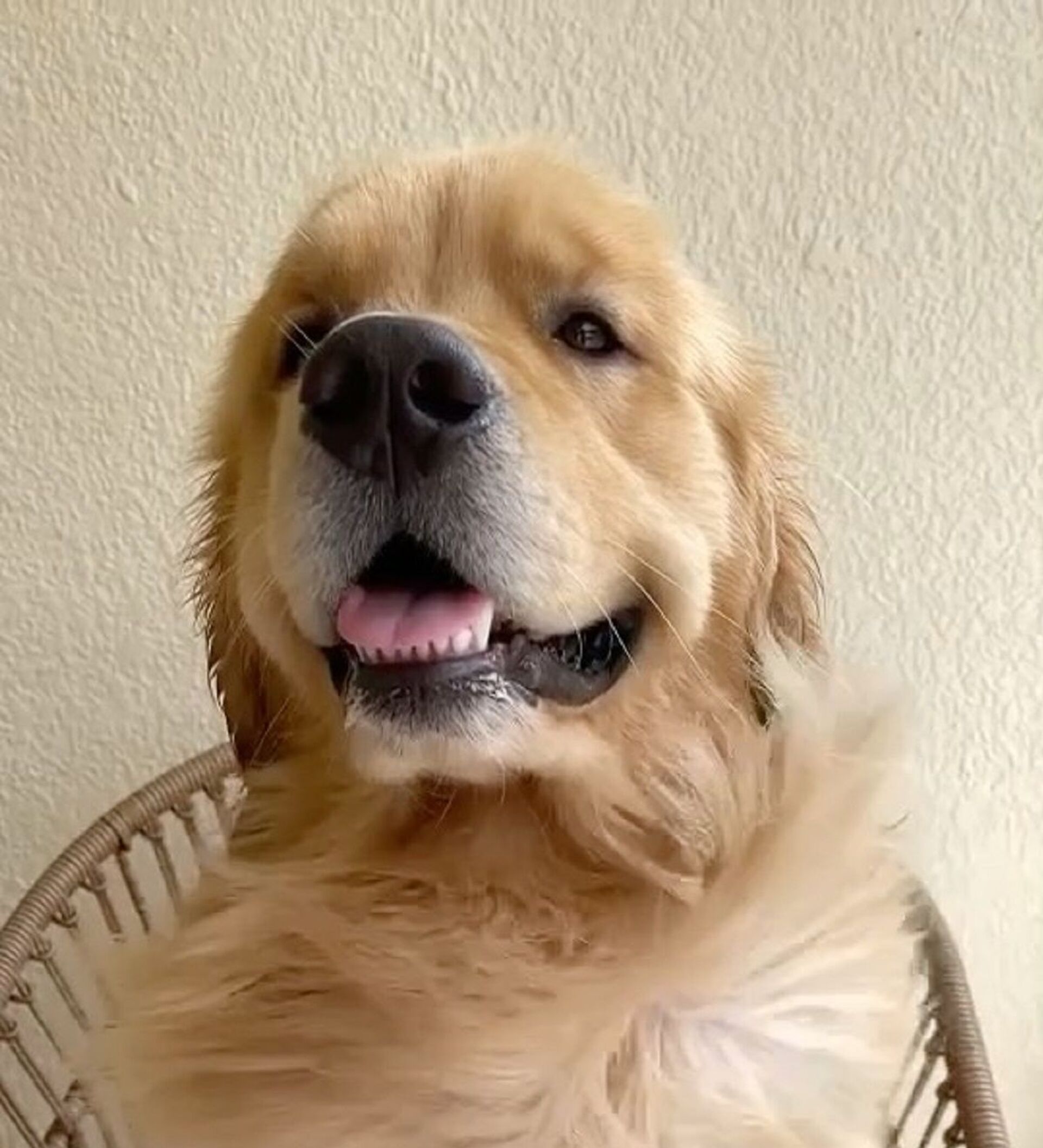 This sweet golden retriever is a smart one, but drying its hair could take a bit of time as the doggy wants to catch the hot air coming from the fan. It seems that the heated air is really tasty, but unfortunately it's impossible to swallow. Well, don't be disappointed doggy - at least you are an internet star now, so you can buy all the heated air you want in the pet shop.