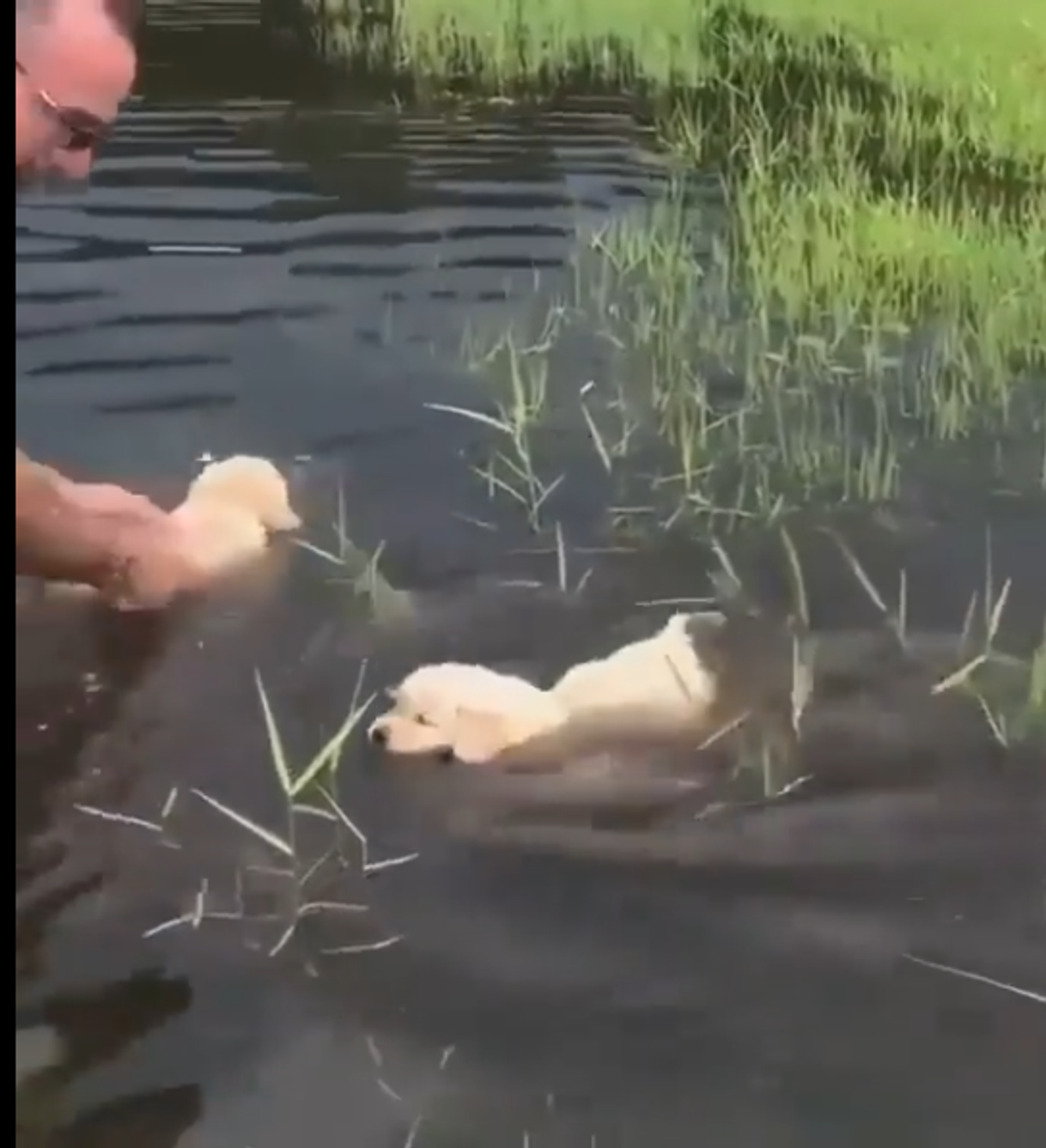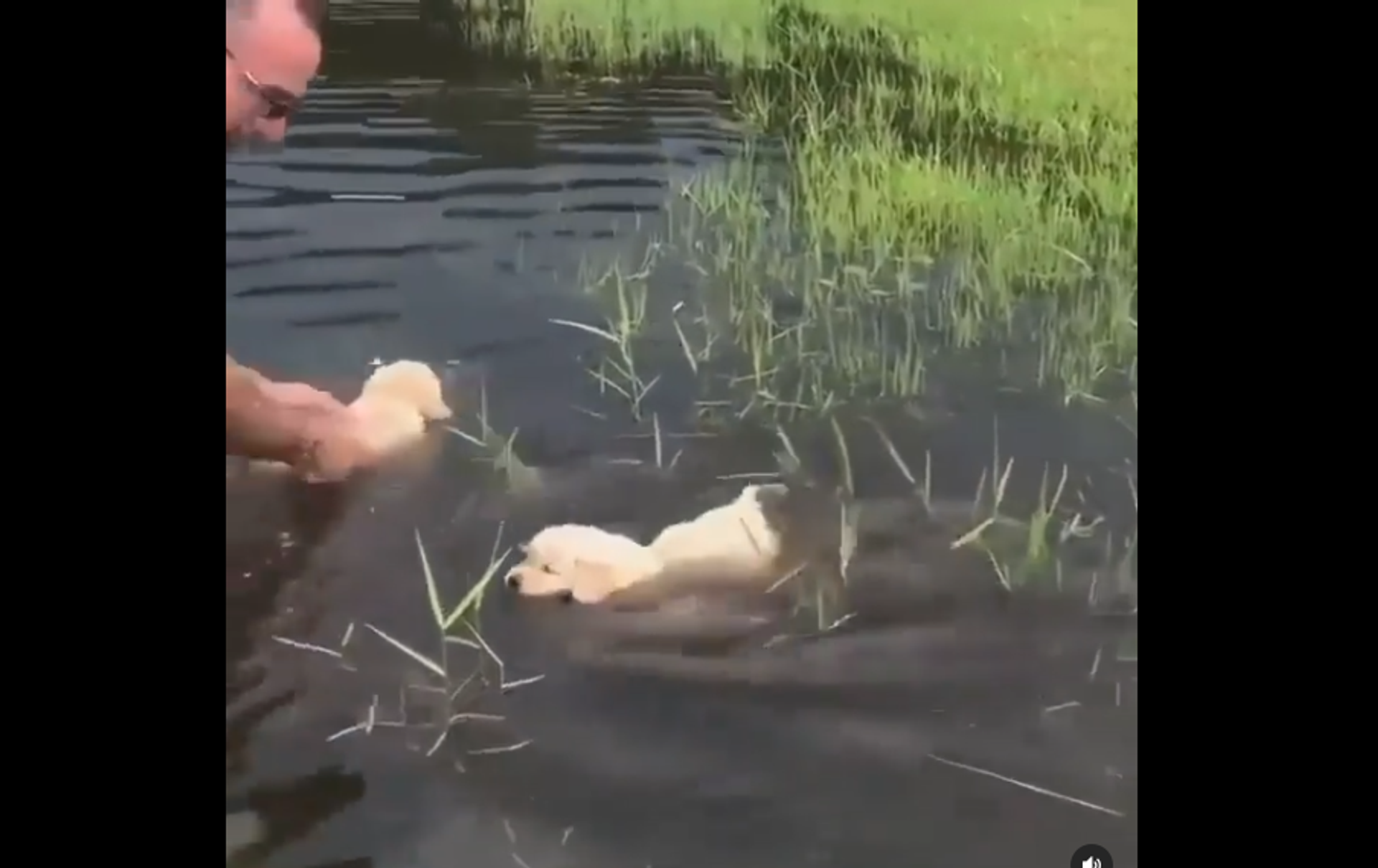 Just look at these brave and adorable golden retriever puppies! The five-week old doggos love their human friend very much, so they are ready to follow him into the water, learning how to swim on the spot. Now, that's the spirit!