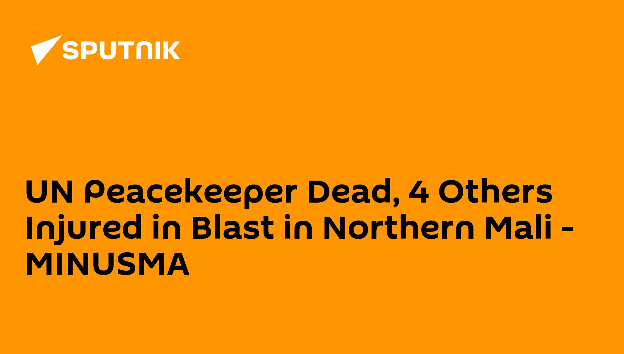 20:45 GMT 02.10.2021 (Updated: 06:47 GMT 03.10.2021) MOSCOW (Sputnik) - A United Nations peacekeeper was killed and four others sustained injuries in a blast in the northern Mali region of Kidal, the UN Multidimensional Integrated Stabilisation Mission in Mali (MINUSMA) said.