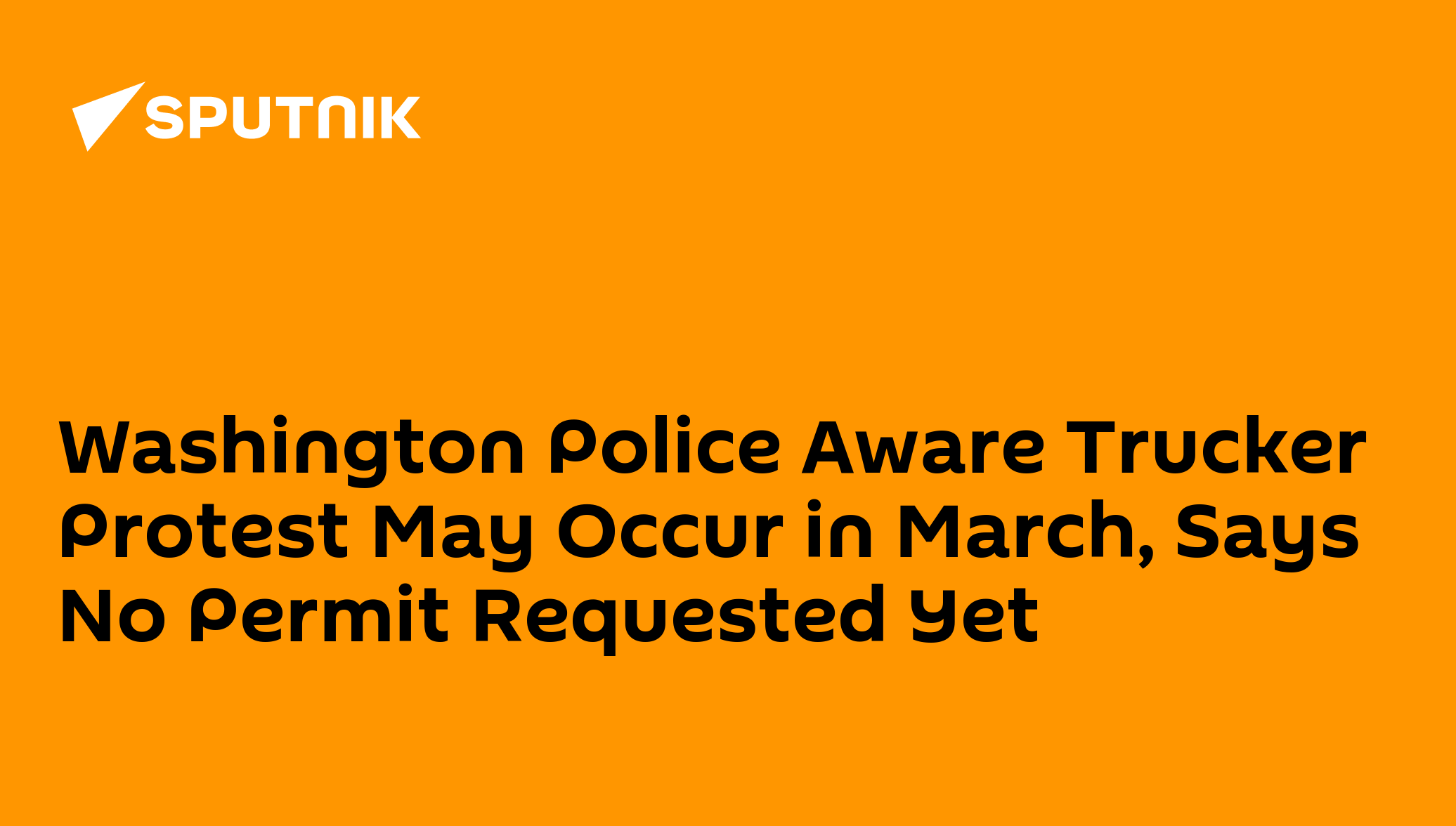 03:37 GMT 10.02.2022 (Updated: 13:28 GMT 06.08.2022) WASHINGTON (Sputnik) - The Washington Metropolitan Police Department confirmed to Sputnik that it is aware a trucker protest that may occur in the US capital next month, but no permit has been requested.