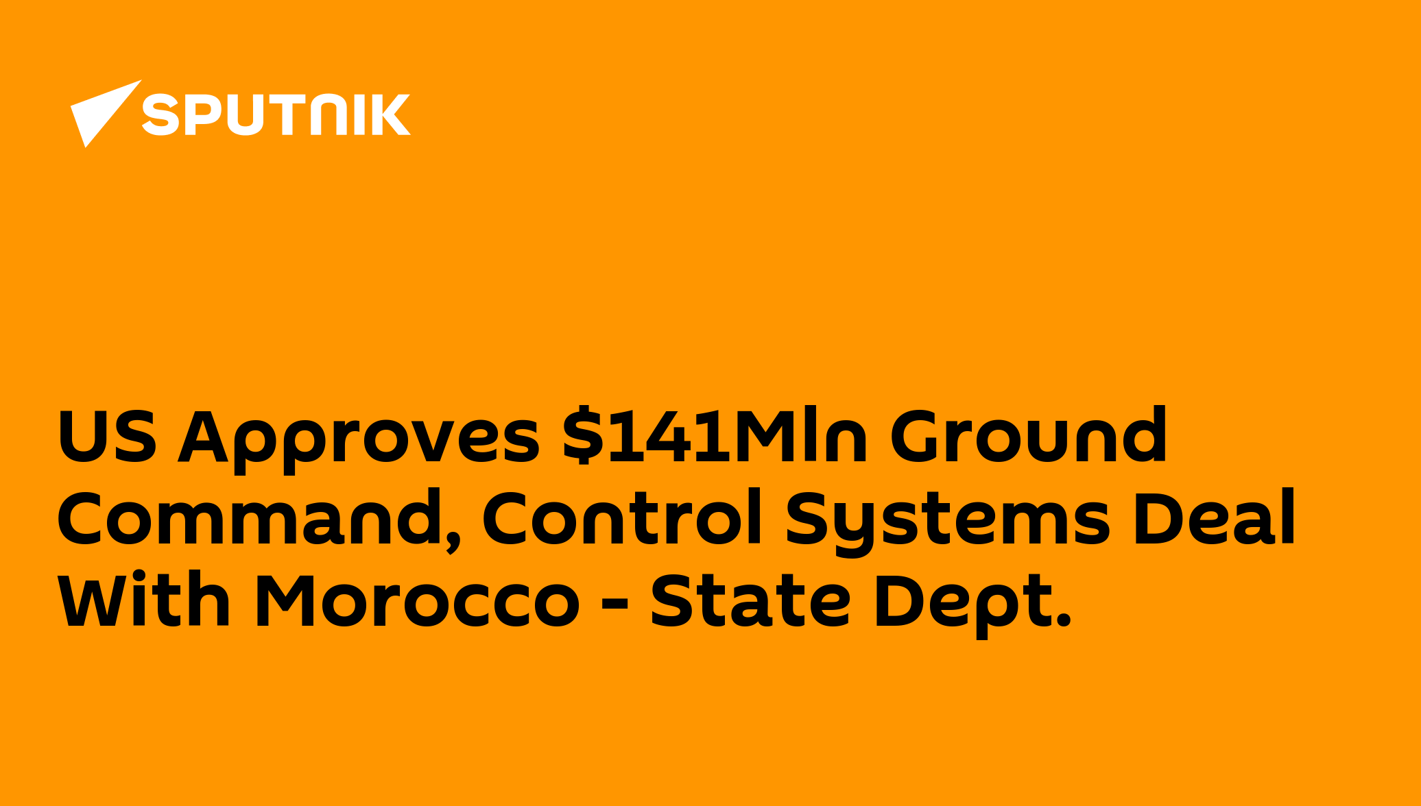 US Approves $141Mln Ground Command, Control Systems Deal With Morocco - State Dept.