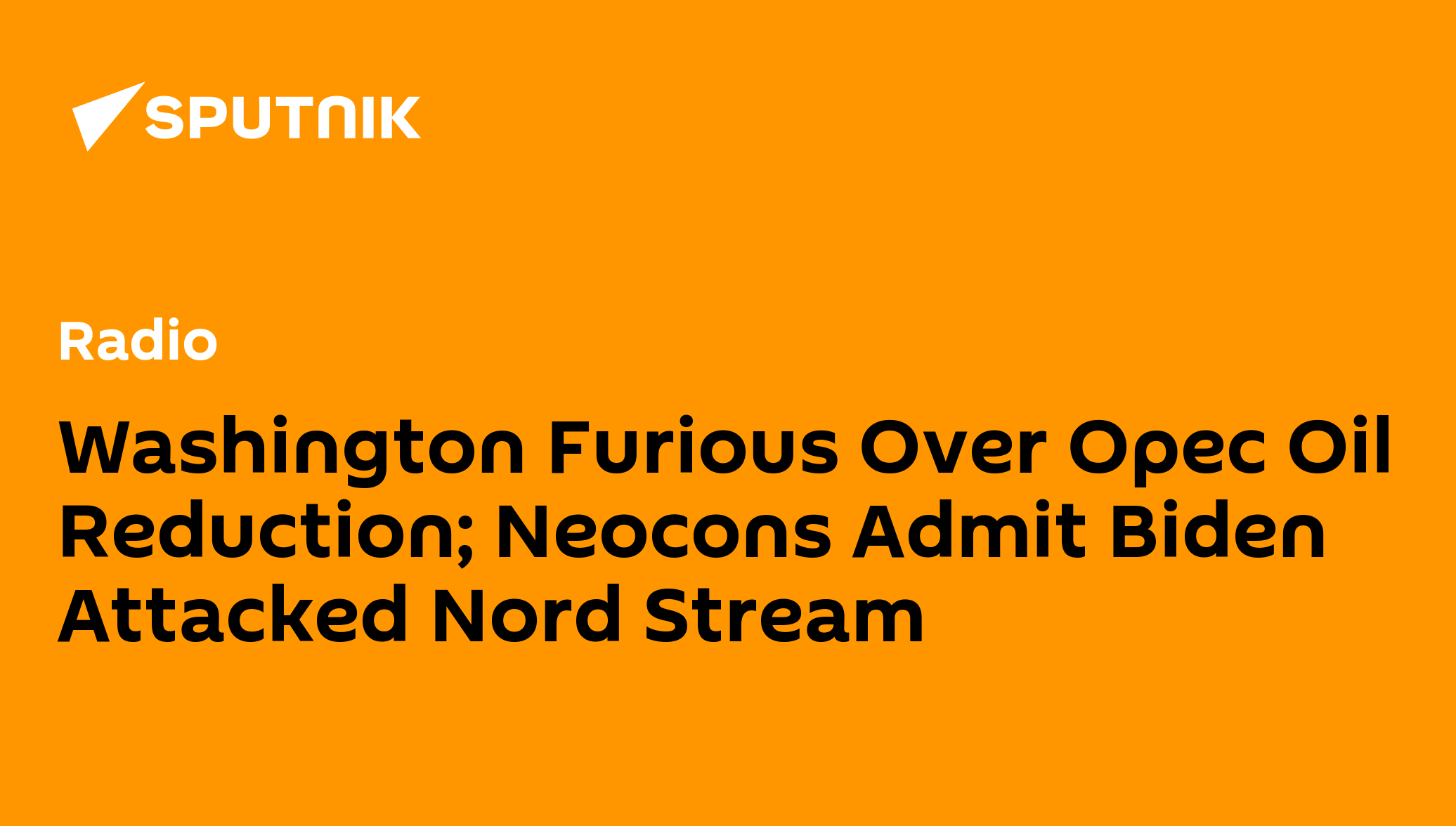 Washington Furious Over Opec Oil Reduction; Neocons Admit Biden Attacked Nord Stream