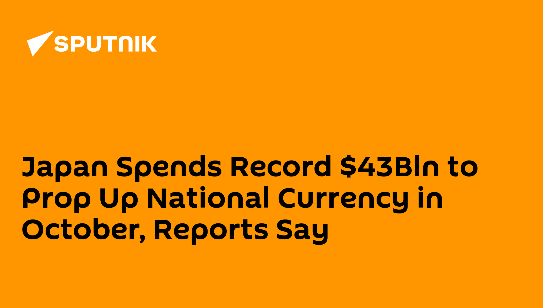 14:30 GMT 31.10.2022 (Updated: 11:01 GMT 05.03.2023) MOSCOW (Sputnik) - The Japanese government spent a record 6.35 trillion yen ($43 billion) on more monetary interventions in October to support the national currency yen which continues to lose value, Japanese media reported on Monday. citing the finance ministry data.