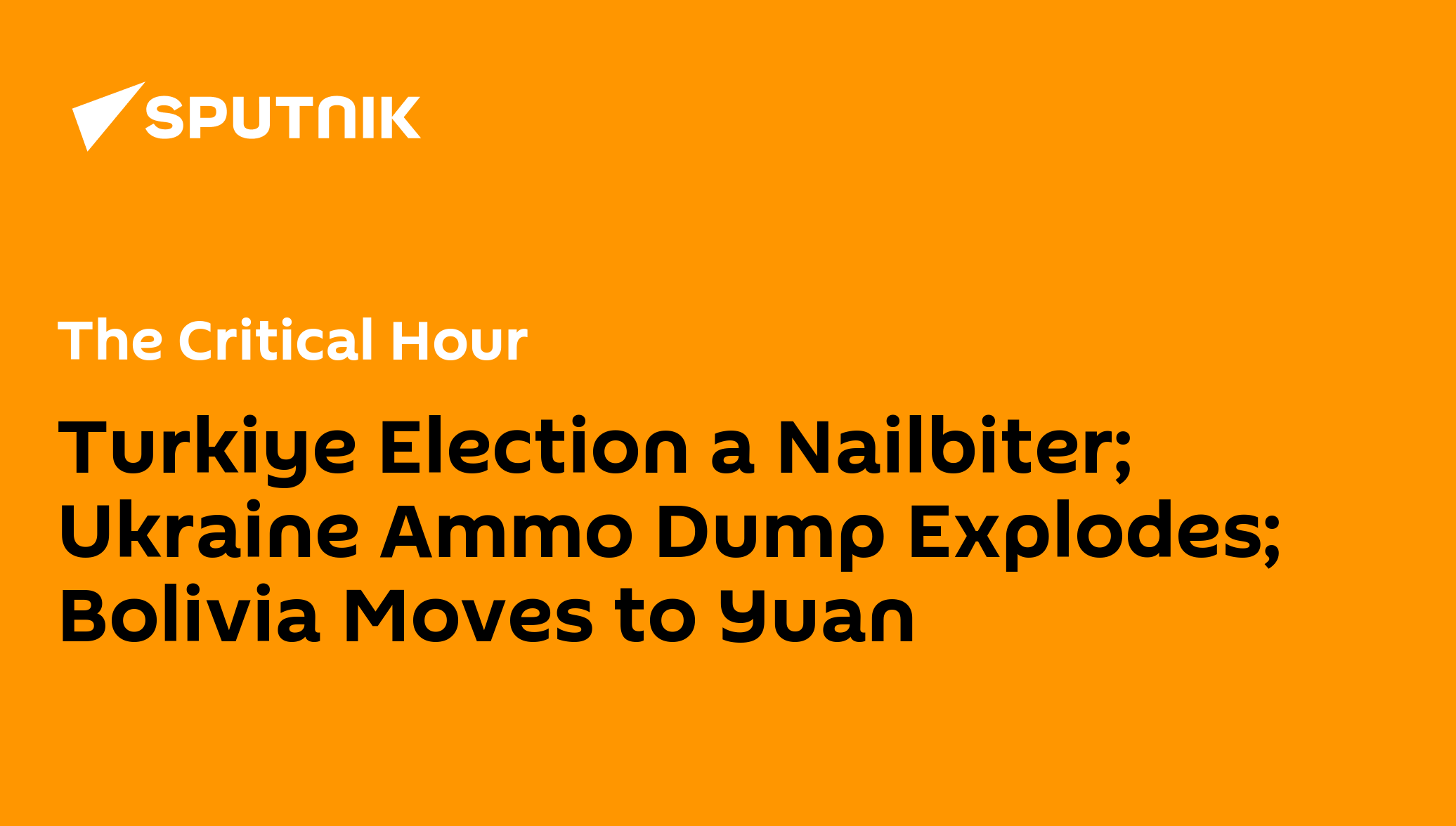 Mark Sleboda, Moscow-based international relations security analyst, joins us to discuss Ukraine. The Turkish election is on the front burner as US and European neocons root against Erdogan and the battle looks to be heading for a runoff. Also, Ukraine's counter-offensive seems to be on hold.Regis Tremblay, an American citizen in Crimea, joins us to discuss foreign policy. The Turkish election is on the front burner as US and European neocons root against Erdogan and the battle is heading for a runoff. Also, a Ukrainian ammo dump has blown and some suspect it contained depleted uranium shells.Ray McGovern, former CIA analyst, and co-founder of Veteran Intelligence Professionals for Sanity, joins us to discuss US intelligence issues. The truth about the CIA's involvement in the assassination of JFK is coming out. Also, there is a forever war on Assange.KJ Noh, writer, teacher, and activist, joins us to discuss China. Antony Blinken hopes to visit China soon. Also, the US is using the Philippines to provoke China.James Carey, host of The Left is Dead podcast, joins us to discuss the Middle East. Israel denies the Nakba while perpetuating it.Linwood Tauheed, associate professor of Economics at the University of Missouri-Kansas City, joins us to discuss the economy. Commercial real estate will likely be the next domino to fall in the US. Also, Bolivia is looking to move to the Yuan for trade with China.Caleb Maupin, journalist, and political analyst, joins us to discuss that Ukraine's counter-offensive seems to be falling apart as an ammo dump is blown in Western Ukraine.James Counts Early, former Assistant Secretary of Education and Public Service at the Smithsonian Institution and board member at the Institute for Policy Studies, in Washington, DC, joins us to discuss Latin America, Venezuela is planning on a law similar to the US Foreign Agent Registration Act. President Petro of Colombia argues that coups must be resisted and defeated.We'd love to get your feedback at radio@sputniknews.comThe views and opinions expressed in this program are those of the speakers and do not necessarily reflect the position of Sputnik.