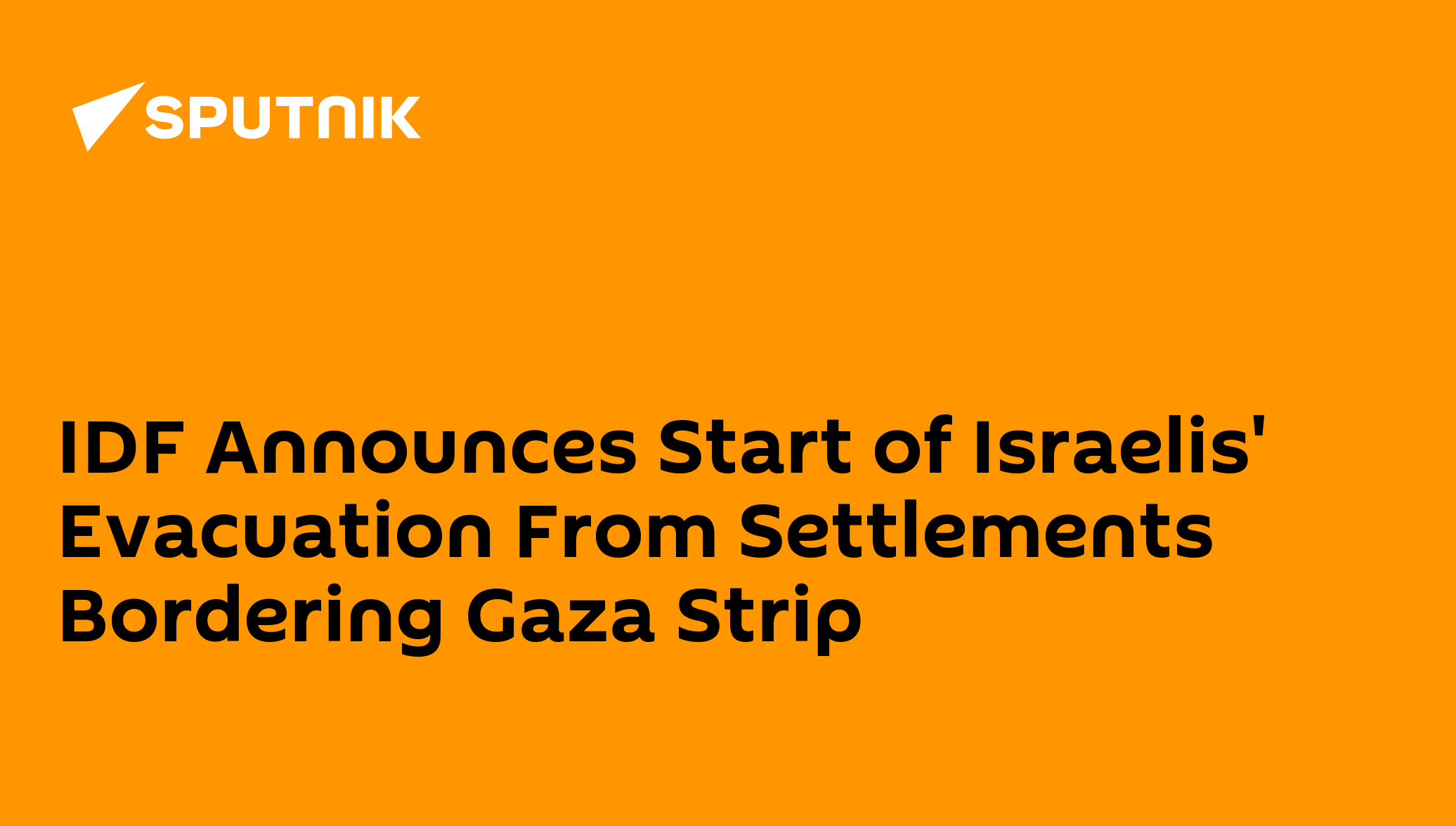 IDF Announces Start of Israelis' Evacuation From Settlements Bordering Gaza Strip