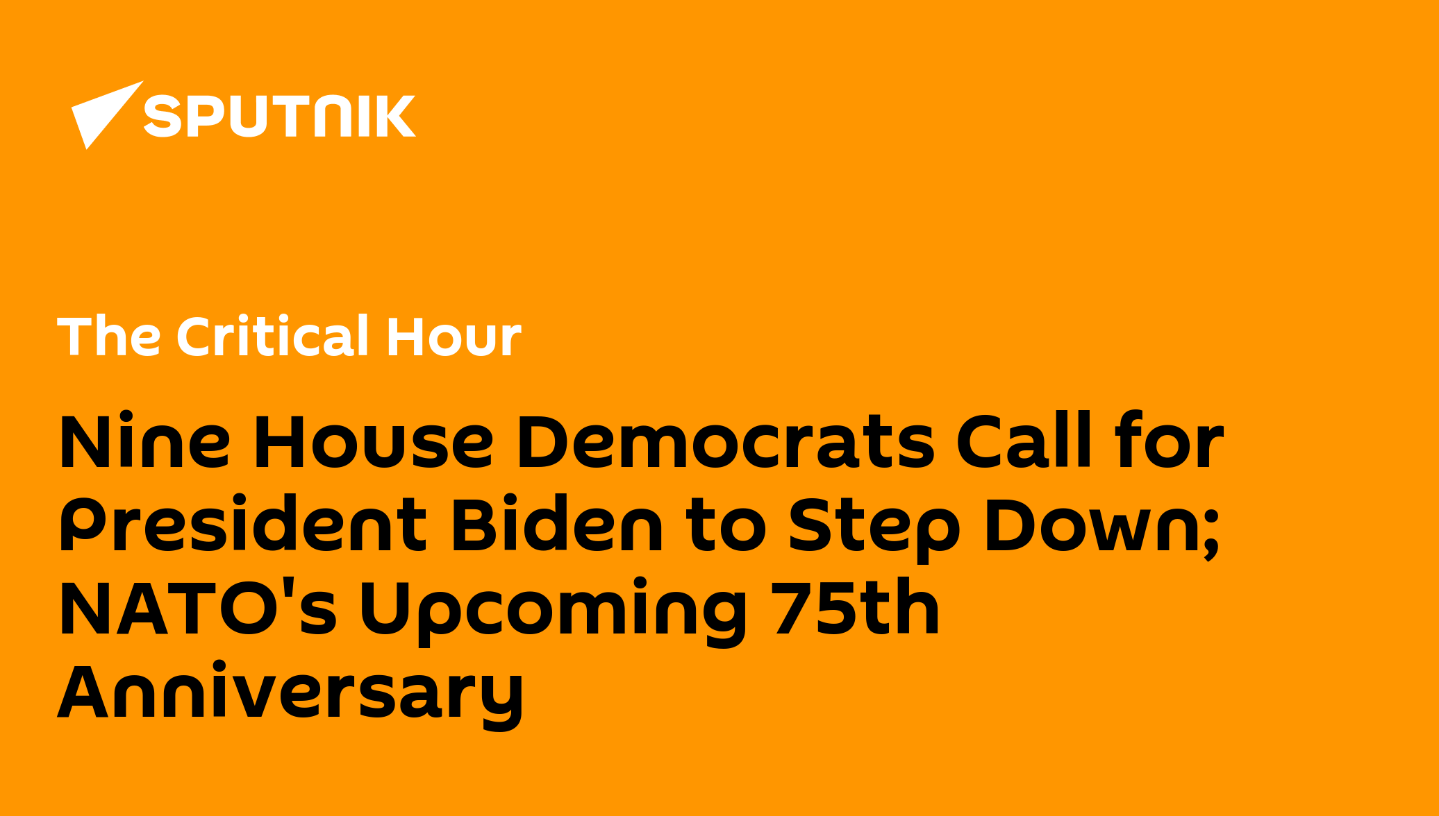 04:03 GMT 09.07.2024 (Updated: 10:26 GMT 10.08.2024) A total of nine House Democrats called for President Biden to step aside as he appeared to seek support from Black Americans at a Philadelphia church service; NATO's 75th anniversary provides reflection on the broken promises that led to war.