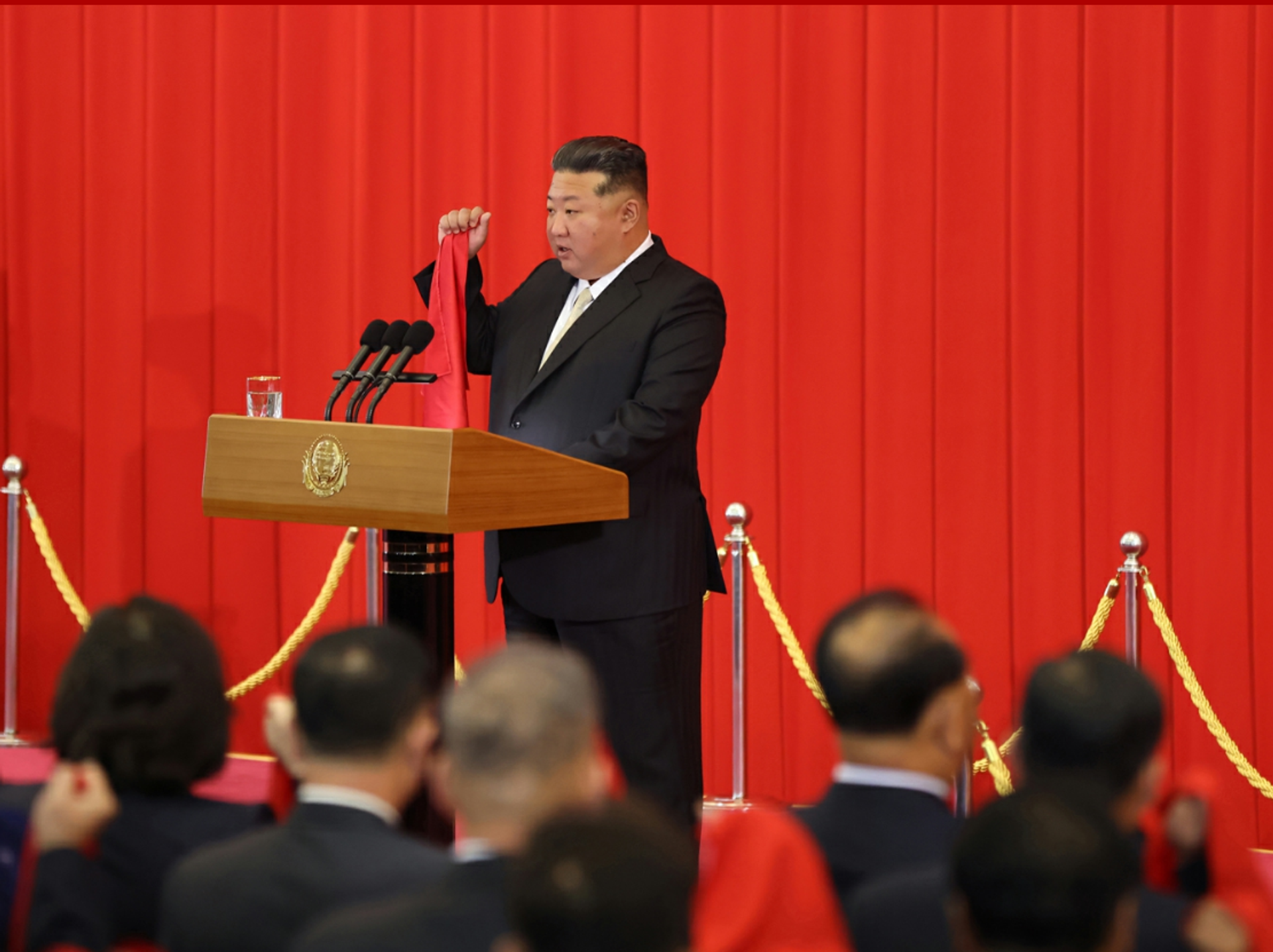 North Korean leader Kim Jong-un attended a national flag-raising and oath-making ceremony at the Mansudae Assembly Hall in Pyongyang to mark the 77th founding anniversary of the DPRK, the KCNA news agency reports, adding that the ceremony was also attended by senior North Korean officials.